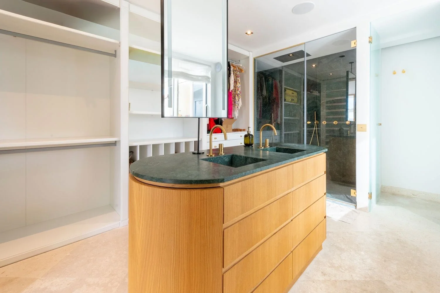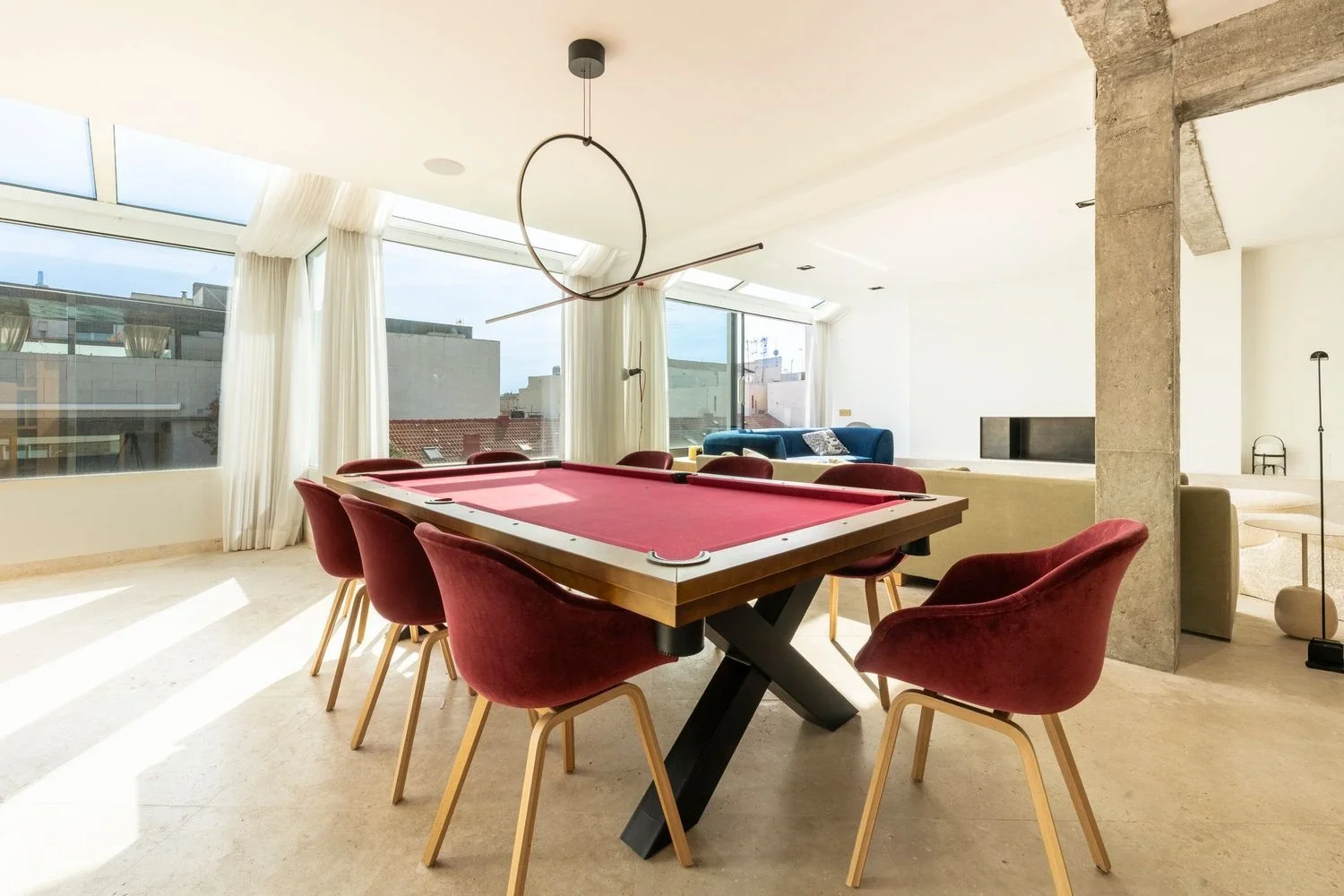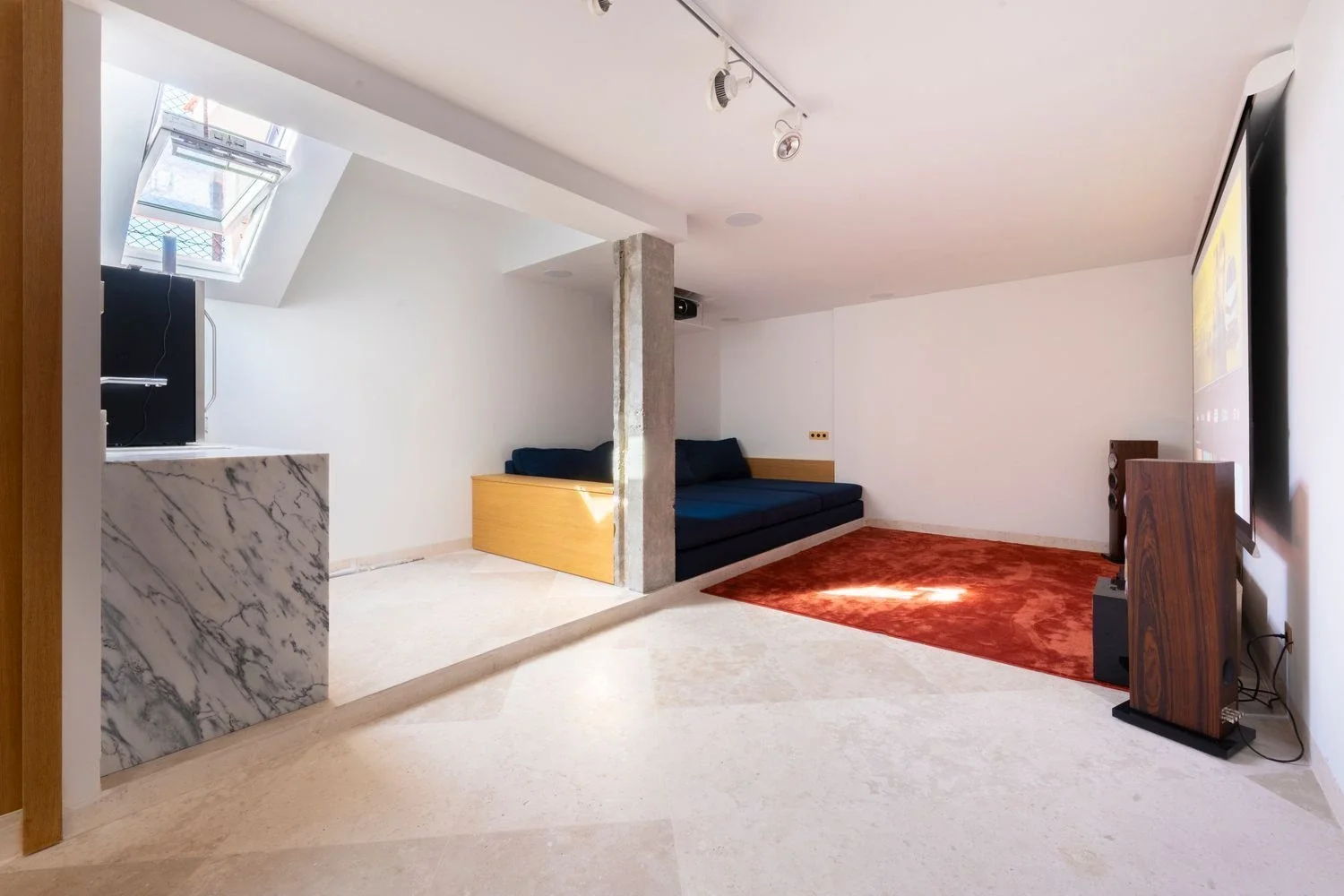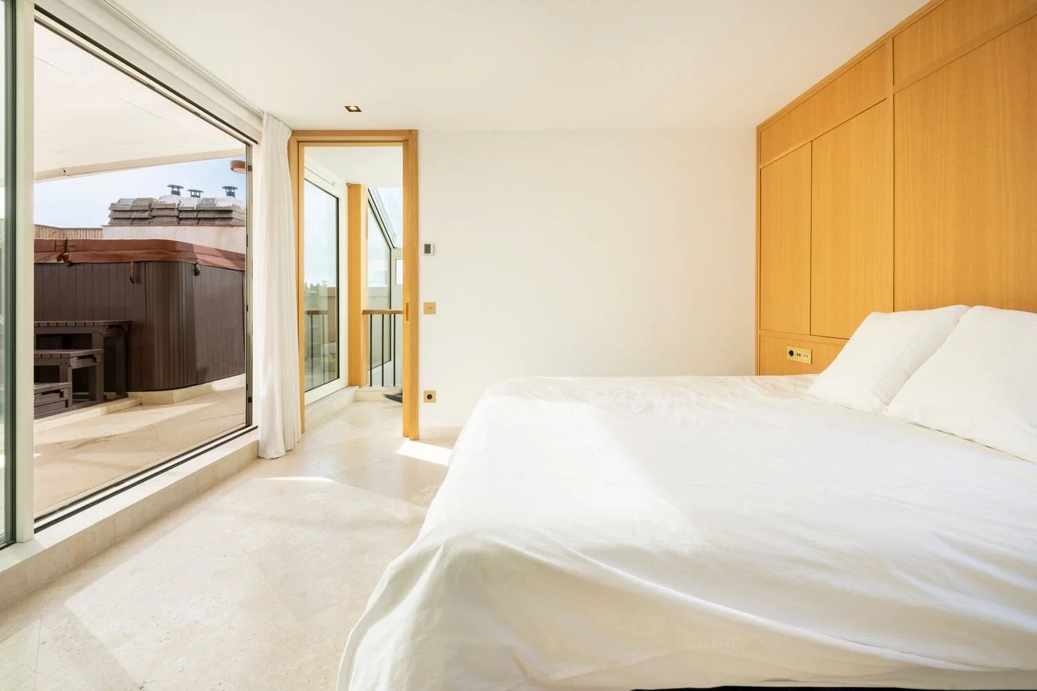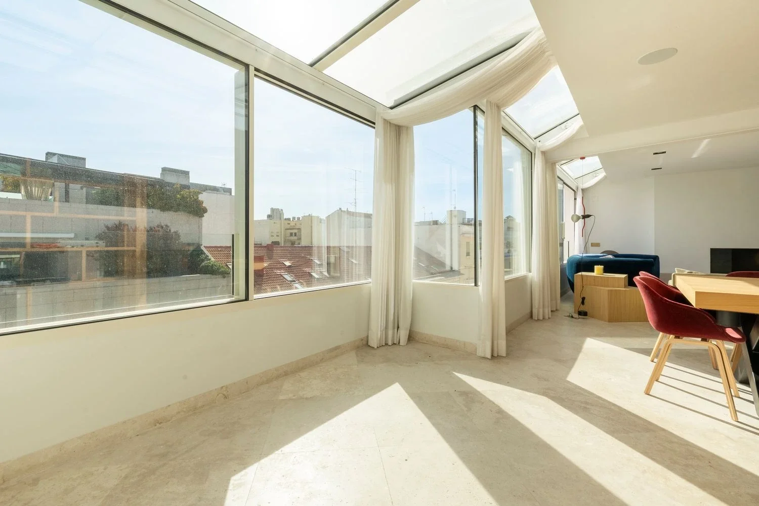 Distribuido en dos plantas, el ático cuenta con cuatro amplios dormitorios y cinco baños completos, además de armarios empotrados y un trastero. Uno de los dormitorios ha sido transformado en una exclusiva sala de cine privada, ideal para disfrutar del ocio sin salir de casa.